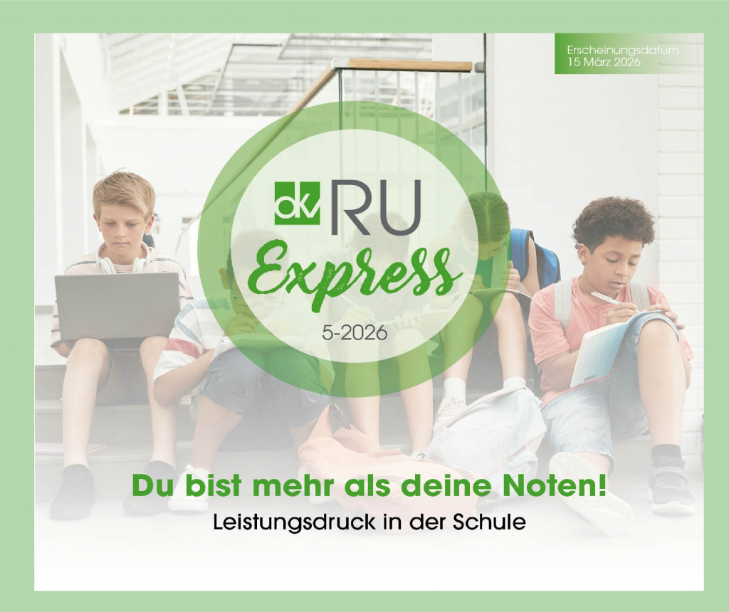 RUexpress ist ein digitales Produkt des dkv – Fachverband für religiöse Bildung und Erziehung. RUexpress erscheint 14-tägig und richtet sich an Lernende der Sekundarstufe I. Viele Anregungen und Materialien sind aber auch in der Sekundarstufe II nutzbar.